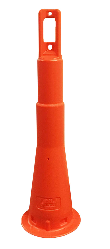 Very durable slim design which is perfect for narrow roadways where space is an issue. Stackable with or without recycled rubber bases (sold separately). Features and overside handle with light bracket for flashing barricade lights which allows the devices to be easily grabbed with or without light attached. MASH Accepted, meets MUTCD Standards
