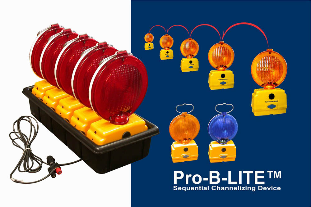 Independently tested and proven to improve nighttime temporary work zone and incident safety. Pro-B-LITE improves lane discipline and reduces average speed on approcah to closed off zones by providing better driver recognition of the upcoming merging taper. What makes the Pro-B-LITE series unique among flashing warning lights is the special intelligent wireless sequential operation of the lights forming a clear directional path for traffic during lane closures. Each lamp automatically recognizes its position in the deployed chain with no master-slave relationship. Proven to improve driver recognition of the merging taper the Pro-B-LITE helps insure the safety of drivers and workers alike.